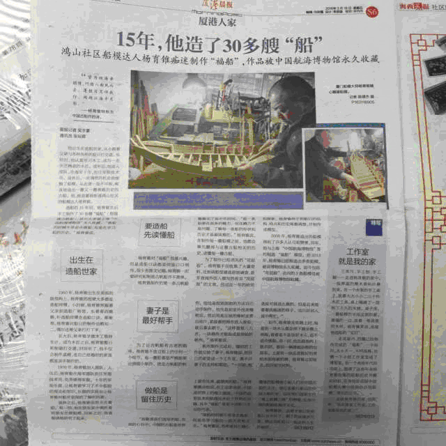 鸿山社区船模达人—杨育锥